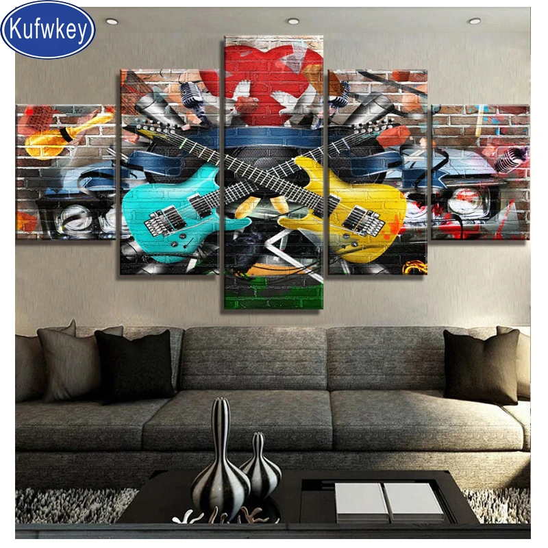 BEST fantasy Guitar Hobby Musical Instruments full drill square diamond painting 5pcs mosaic diamond emb